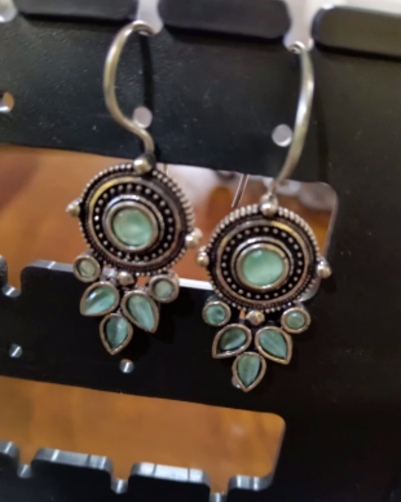 Inspired by traditional Indian jewelry aesthetics, these oxidised silver earrings feature a smooth drop silhouette enhanced with subtle ornamental curves.