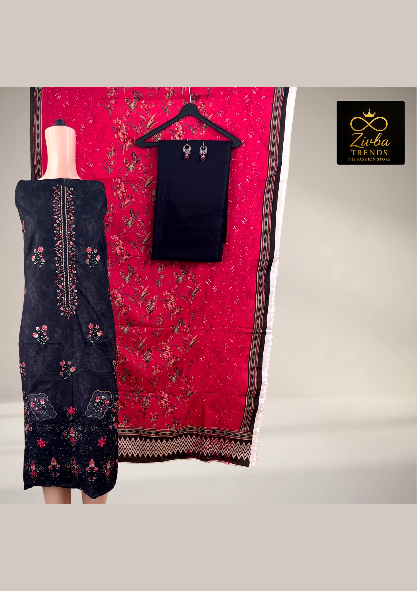Black unstitched suit from Zivba Trends is positioned as a practical yet attractive choice for buyers seeking dependable unstitched ladies suit material for Indian and export markets. The design balances day-to-day usability with an ethnic aesthetic, making it suitable for retail stores, resellers and online marketplaces. Supplied in an unstitched format, it allows customers and tailors to customise the fit according to regional preferences and size requirements.
