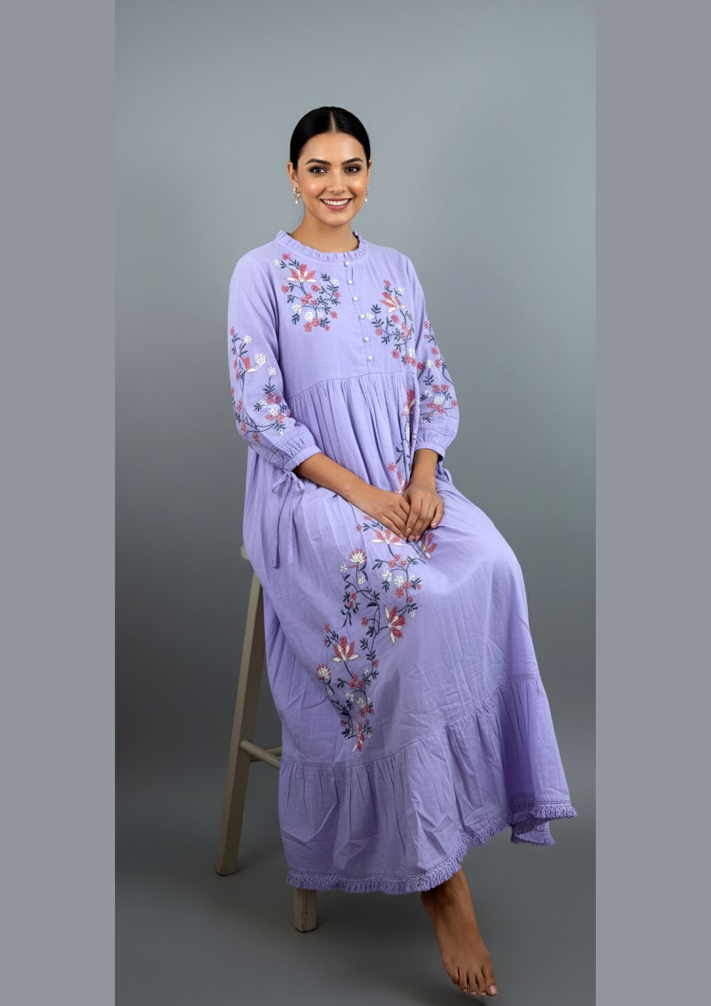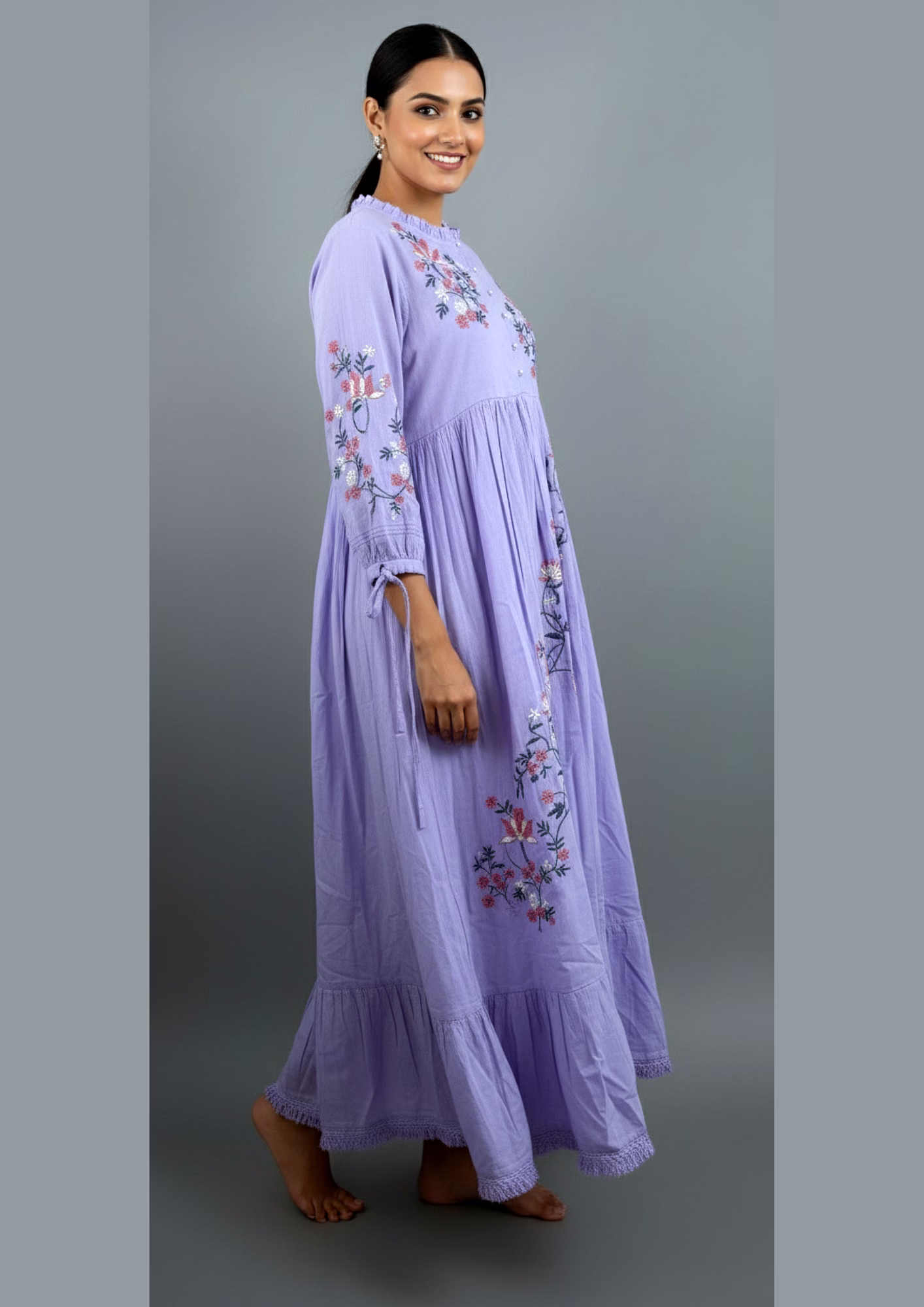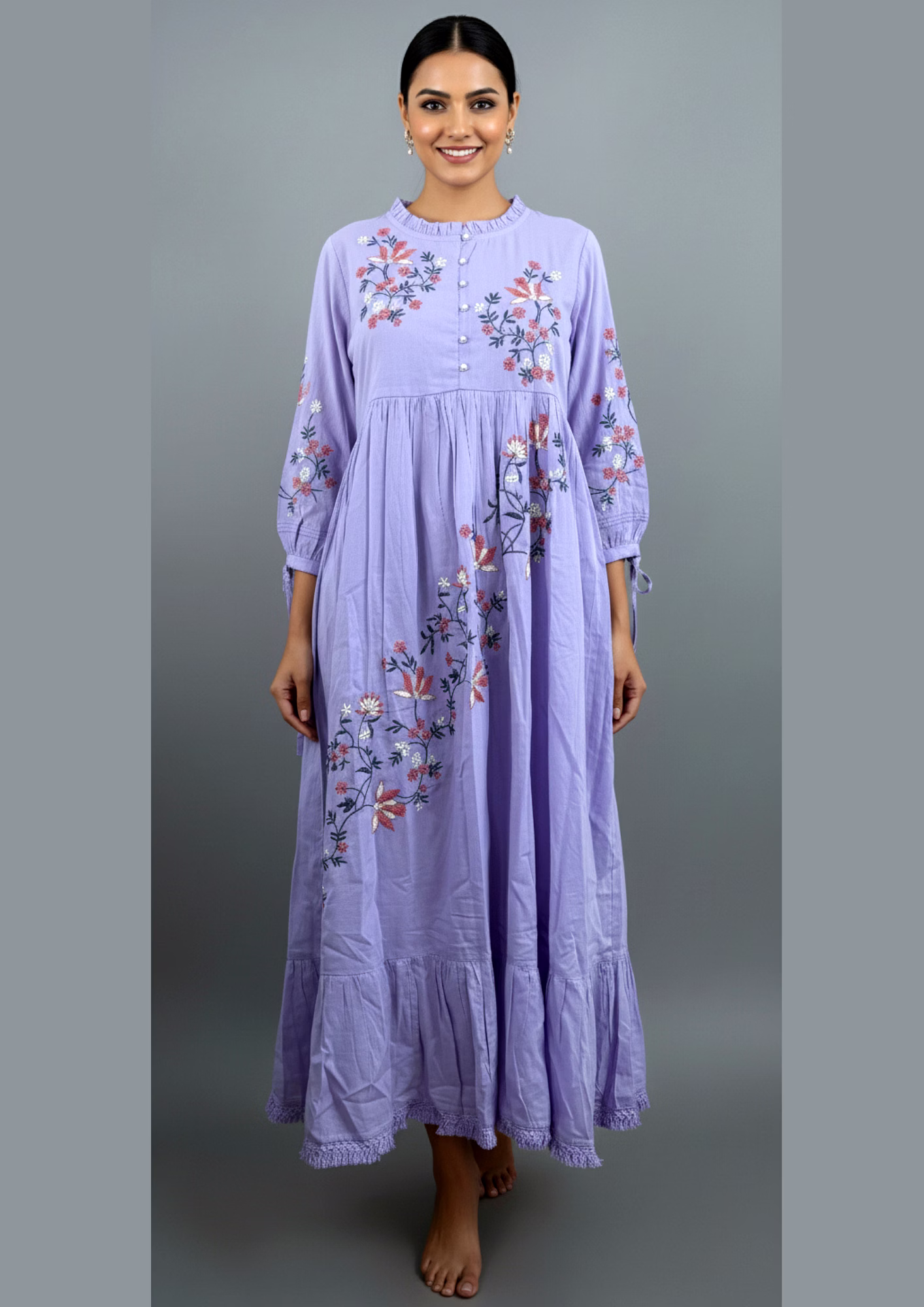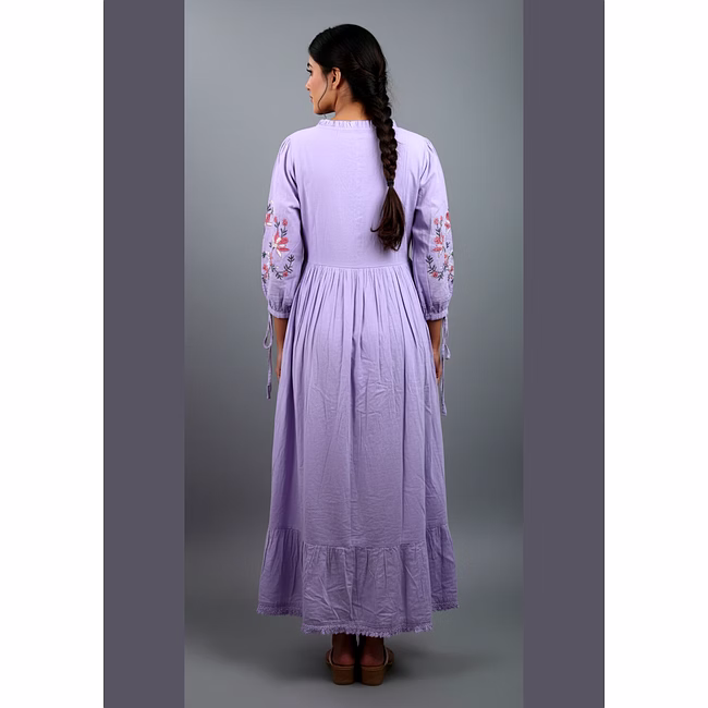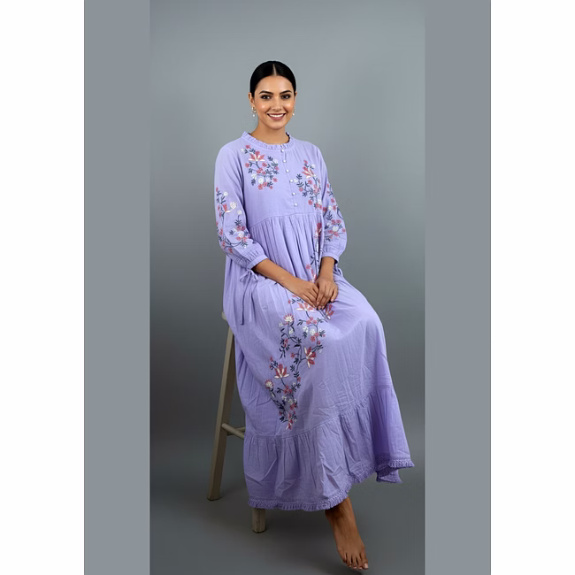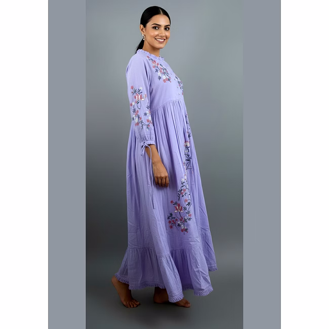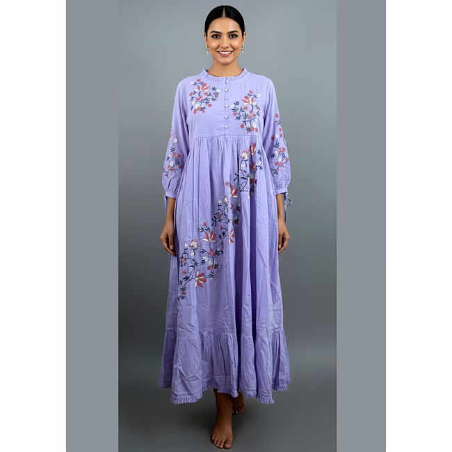 This Light Purple anarkali gown, in 100% cotton fabric from Zivba Trends is designed for buyers seeking reliable women's anarkali gown suitable for both Indian and international markets. The 100% cotton fabric offers a balance of comfort and structure with a flowing silhouette that supports all-day ease of movement. Design elements such as embroidered detailing, floral motif pattern add visual interest while maintaining a balanced, wearable look for repeat use. Available sizes (M,L,XL,XXL) support easier assortment planning for retailers and aggregators working across varied body types. This style is well suited for boutiques, e-commerce sellers and wholesale buyers looking for consistent women痴 ethnic wear options.