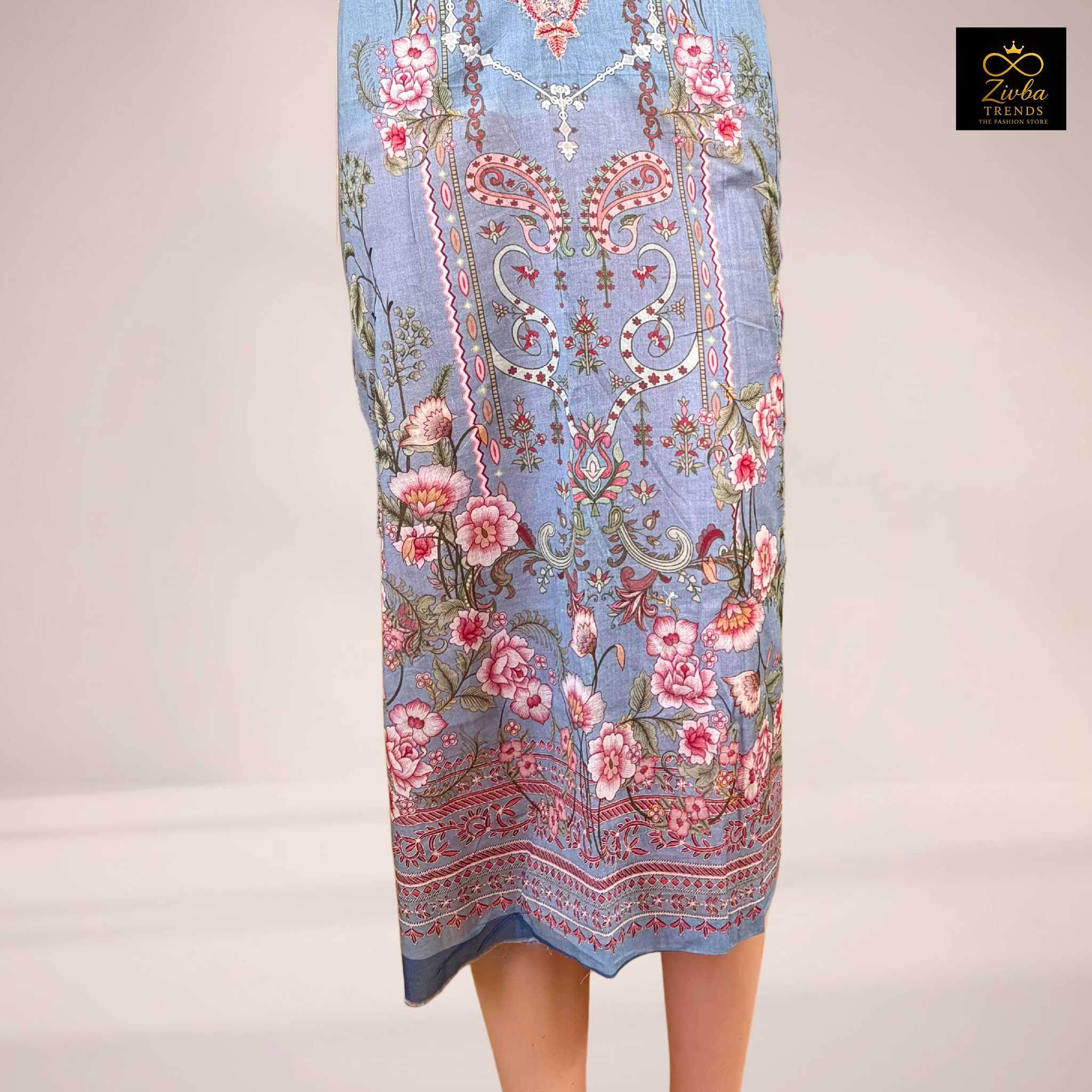 This Light Sky Blue suit set, in cotton fabric from Zivba Trends is designed for buyers seeking reliable women's ethnic suit set suitable for both Indian and international markets. The cotton fabric offers a balance of comfort and structure with a suit set format that works well for office, festive and occasion wear. Design elements such as embroidered detailing, floral motif pattern add visual interest while maintaining a balanced, wearable look for repeat use. Standardised sizing supports easy assortment planning for retailers, resellers and online marketplaces. This style is well suited for boutiques, e-commerce sellers and wholesale buyers looking for consistent women痴 ethnic wear options.