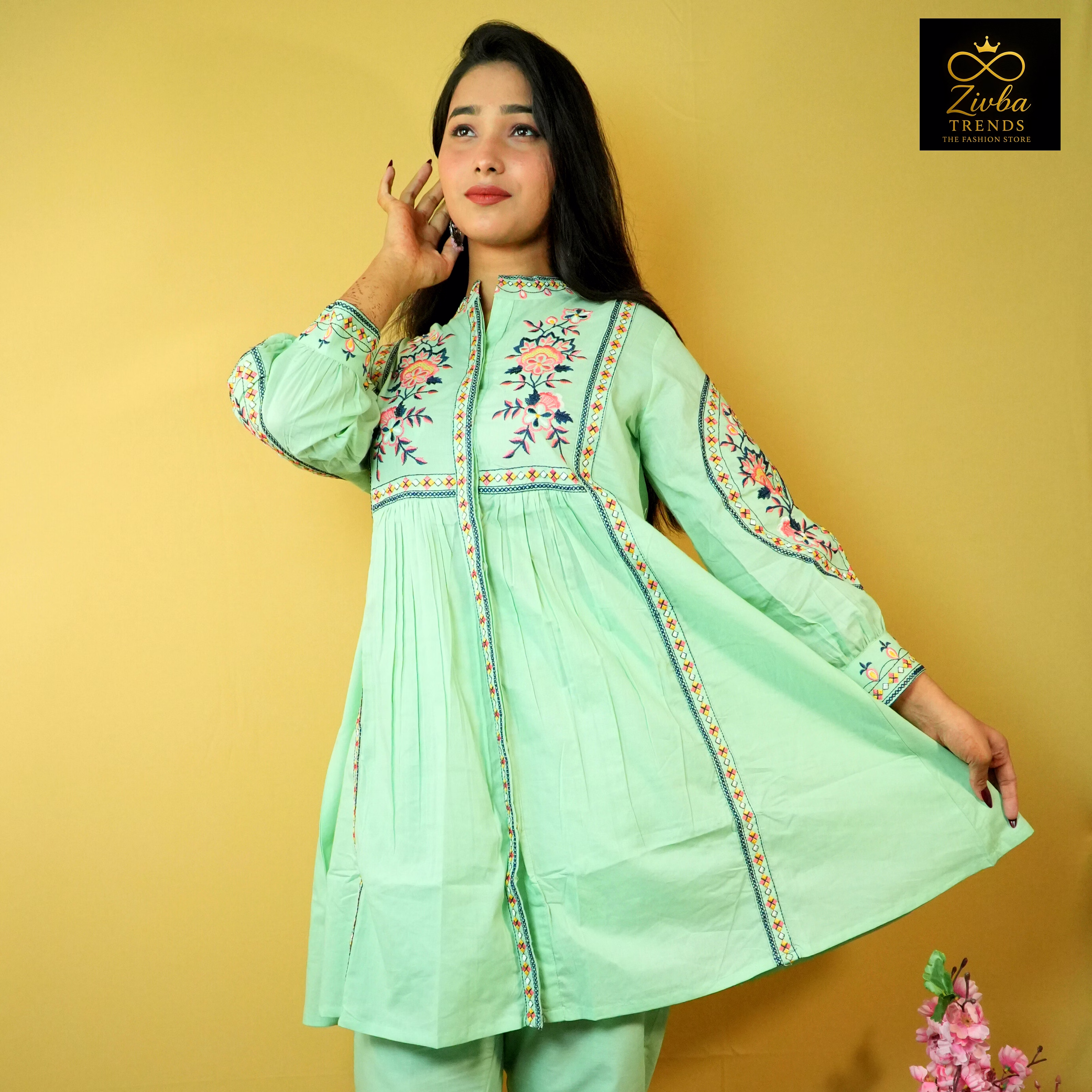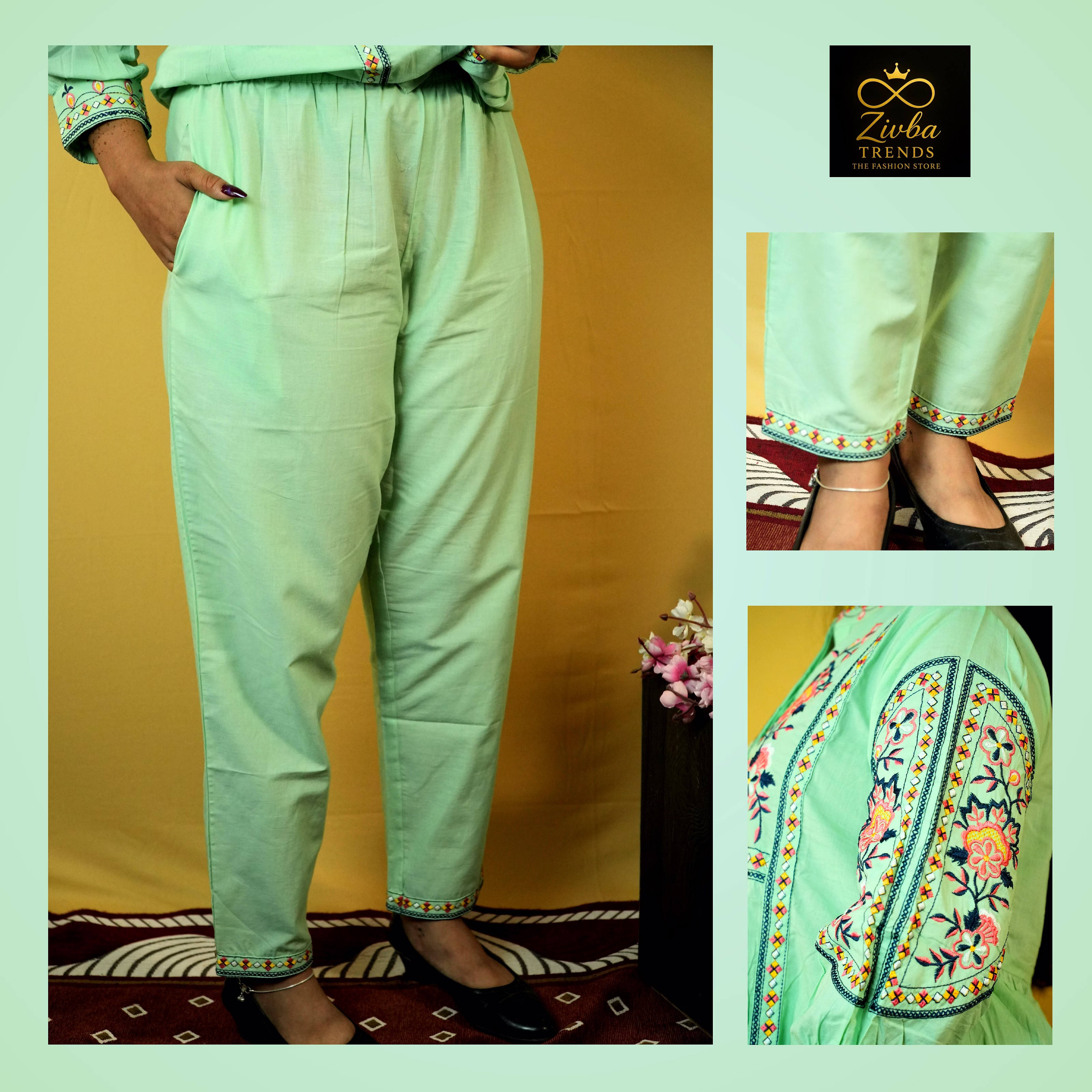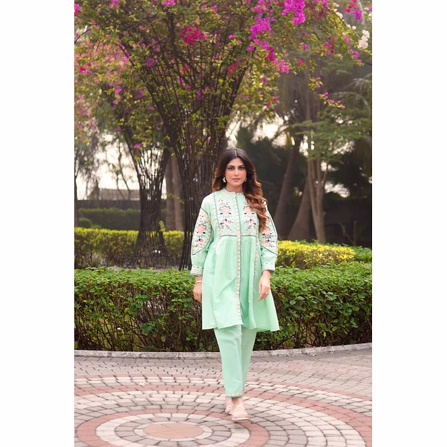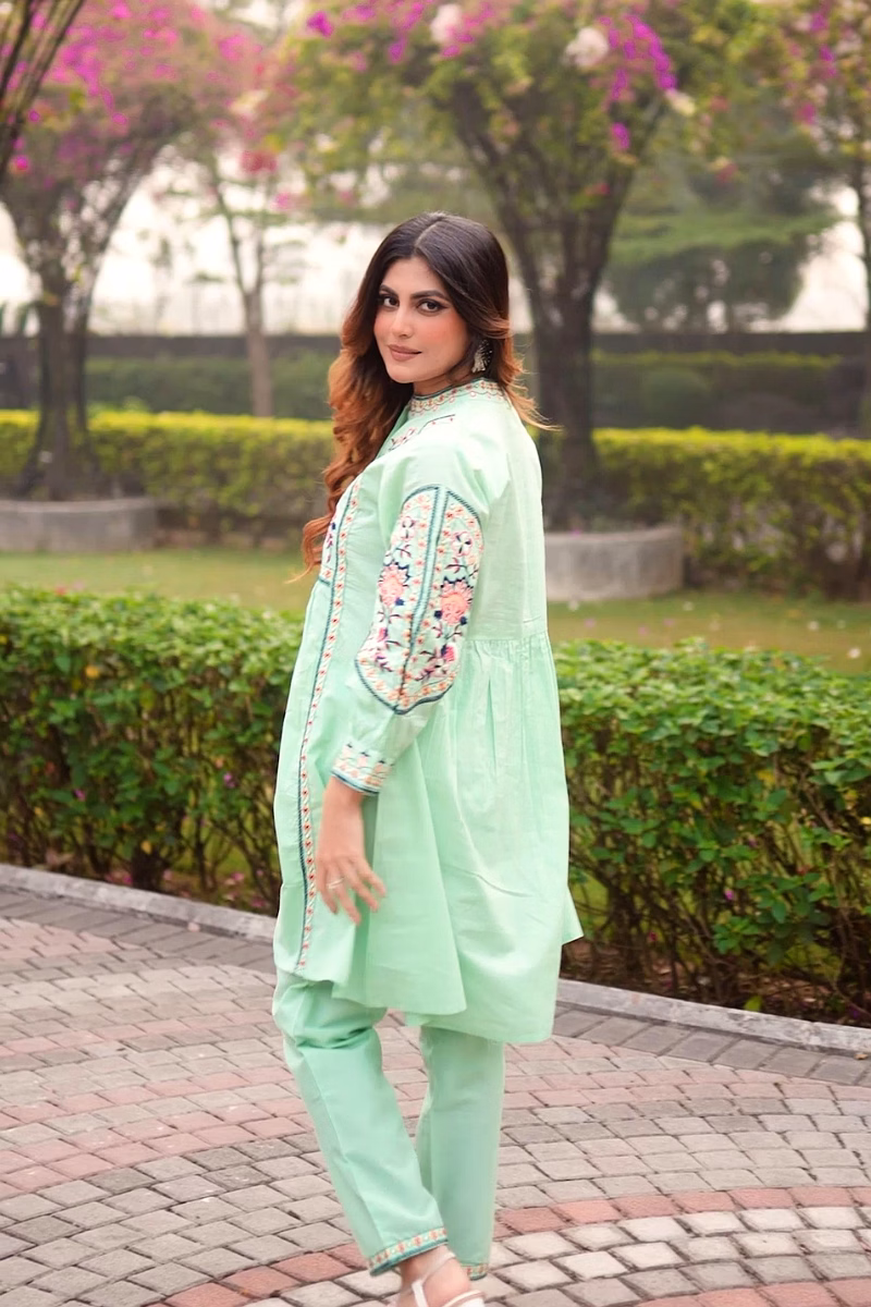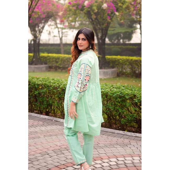 This Sea Green co-ord set, in cotton fabric from Zivba Trends is designed for buyers seeking reliable women's co-ord set suitable for both Indian and international markets. The cotton fabric offers a balance of comfort and structure with a coordinated top-and-bottom silhouette that is easy to style. Design elements such as embroidered detailing, floral motif pattern add visual interest while maintaining a balanced, wearable look for repeat use. Standardised sizing supports easy assortment planning for retailers, resellers and online marketplaces. This style is well suited for boutiques, e-commerce sellers and wholesale buyers looking for consistent women痴 ethnic wear options.