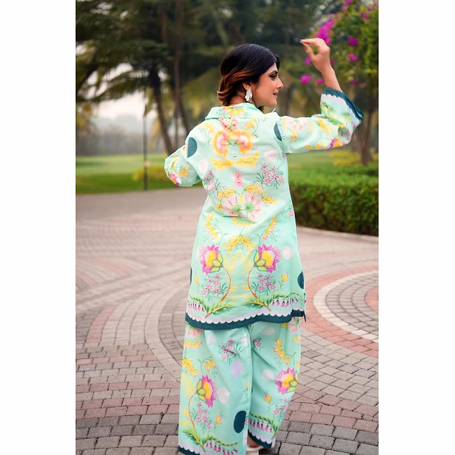 - Sea Green Floral tone enhances the visual appeal of the co-ord set