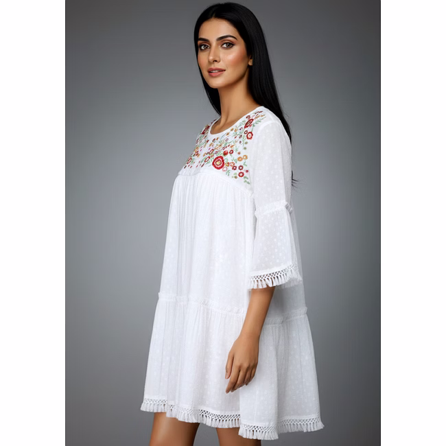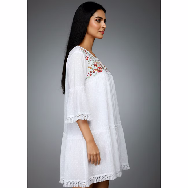 Crafted in pure cotton fabric, the garment offers a balanced combination of breathability, drape, and durability suited for regular use. Embroidered detailing and floral motif patterns add texture and visual depth without increasing garment weight or care complexity. Seams and panel placements are planned to withstand frequent handling and household laundering conditions.