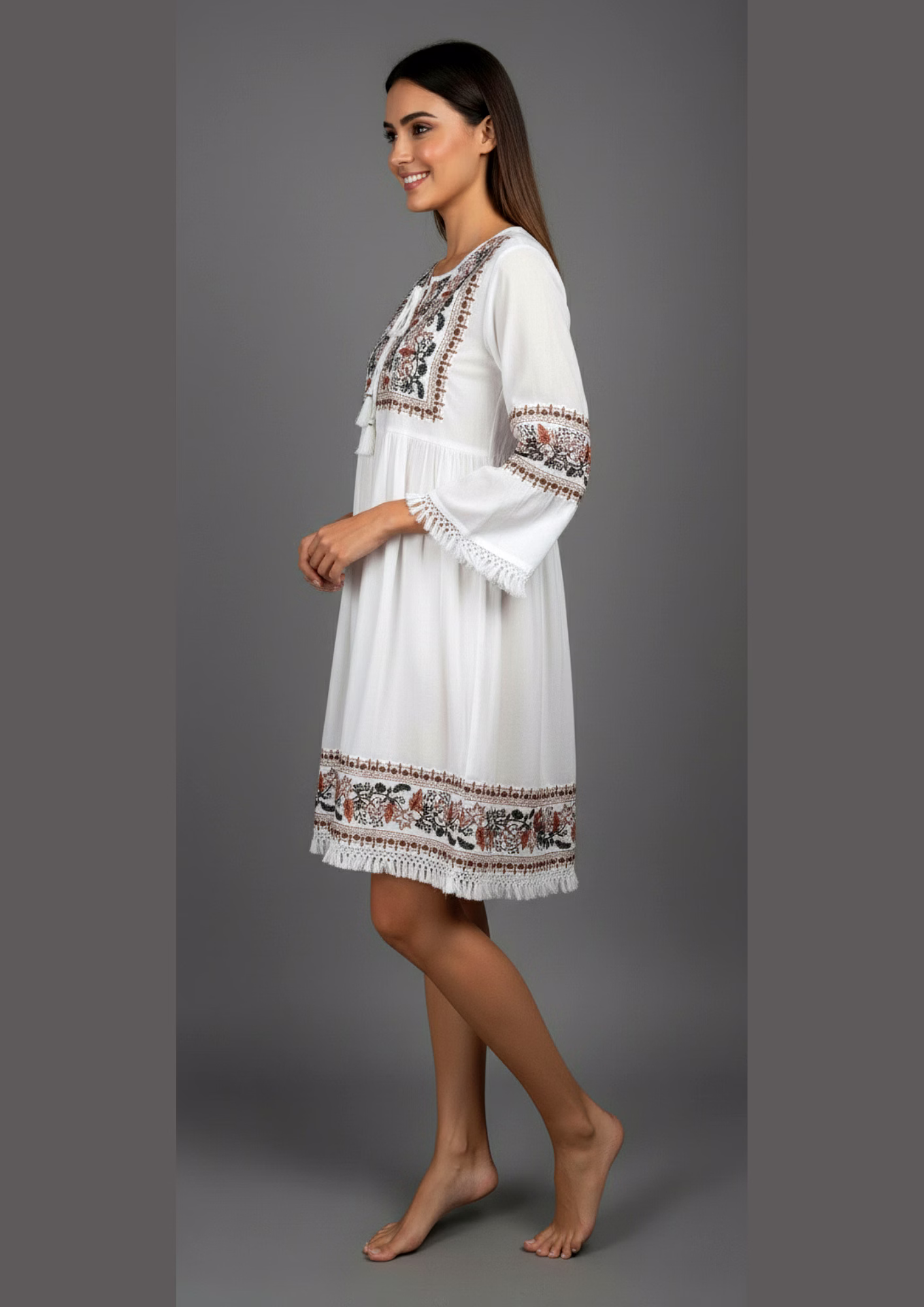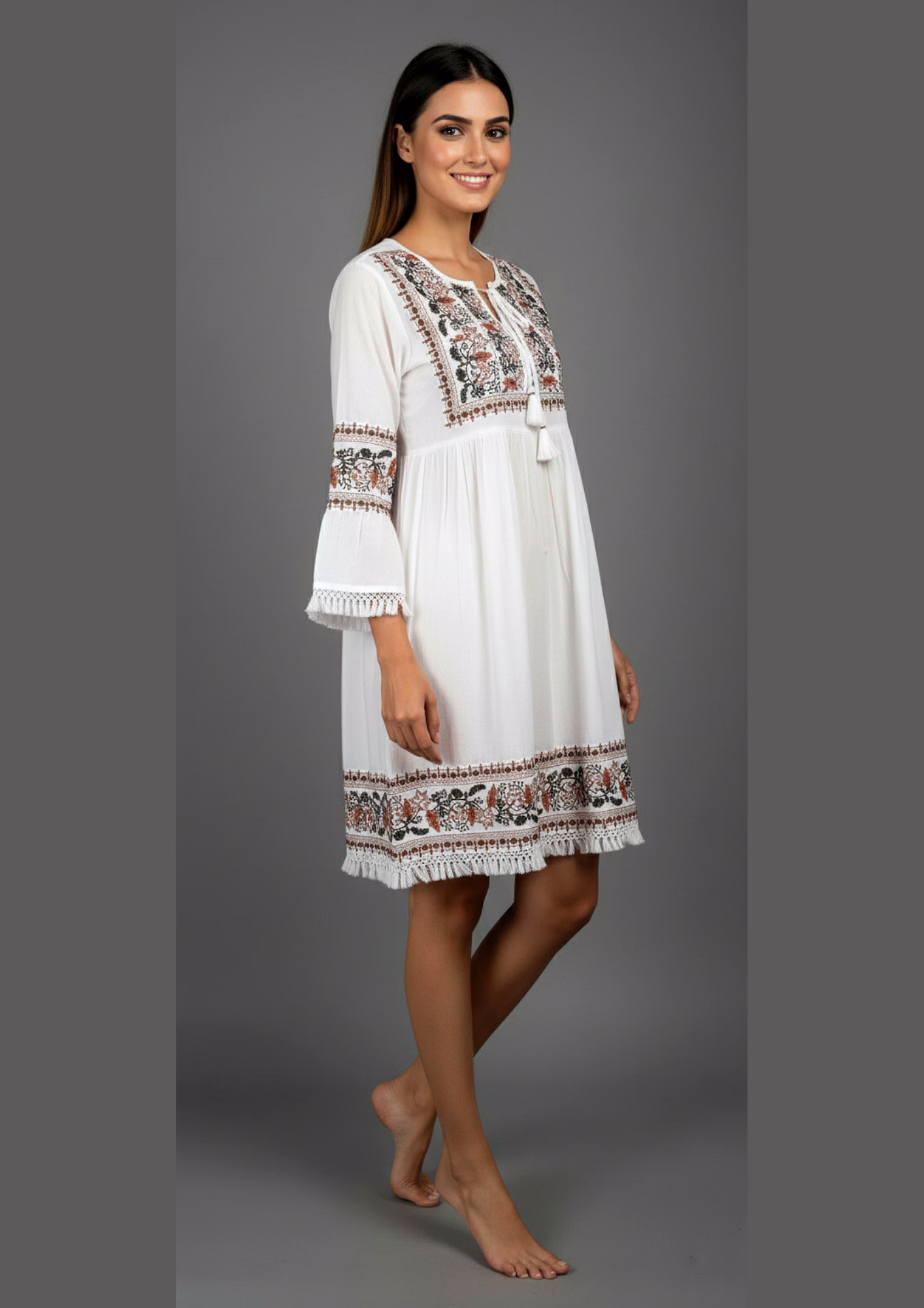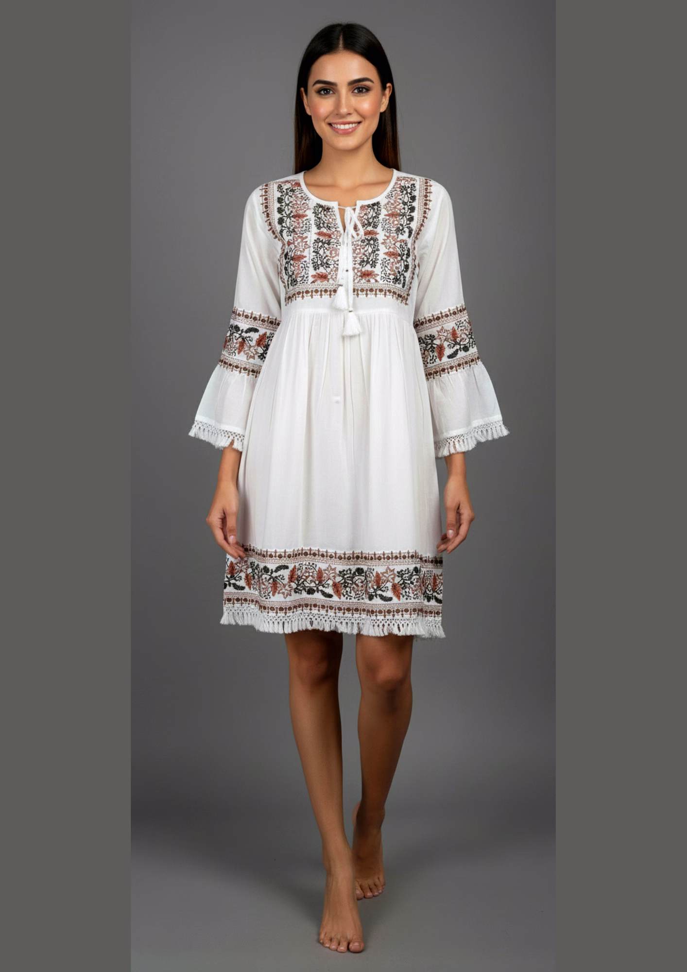This White kurti top, in pure cotton fabric from Zivba Trends is designed for buyers seeking reliable women's cotton top suitable for both Indian and international markets. The pure cotton fabric offers a balance of comfort and structure with a versatile length that pairs well with denims, trousers or ethnic bottoms. Design elements such as embroidered detailing, floral motif pattern add visual interest while maintaining a balanced, wearable look for repeat use. Available sizes (M, L,XL,XXL) support easier assortment planning for retailers and aggregators working across varied body types. This style is well suited for boutiques, e-commerce sellers and wholesale buyers looking for consistent women痴 ethnic wear options.