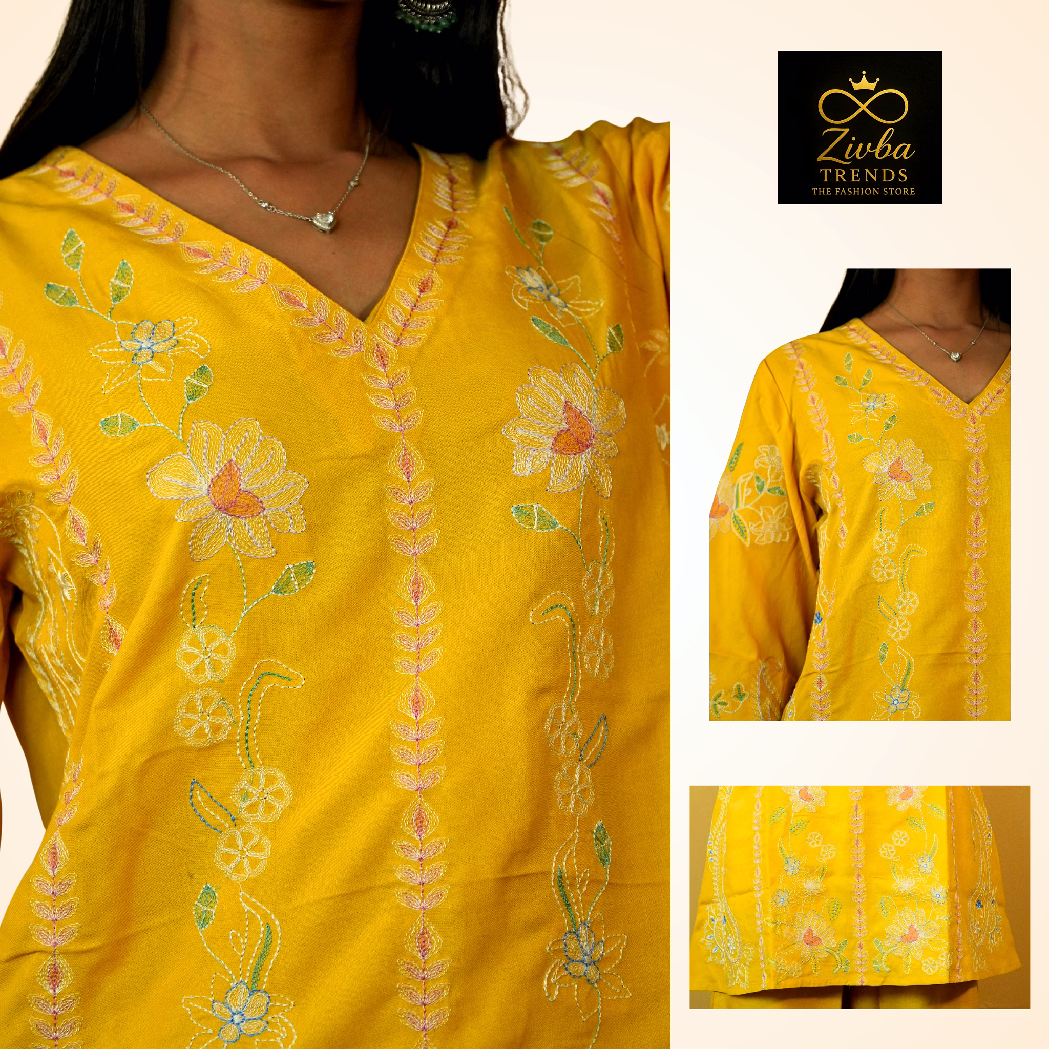 This Yellow Multicolour co-ord set, in cotton fabric from Zivba Trends is designed for buyers seeking reliable women's co-ord set suitable for both Indian and international markets. The cotton fabric offers a balance of comfort and structure with a coordinated top-and-bottom silhouette that is easy to style. Design elements such as embroidered detailing add visual interest while maintaining a balanced, wearable look for repeat use. Standardised sizing supports easy assortment planning for retailers, resellers and online marketplaces. This style is well suited for boutiques, e-commerce sellers and wholesale buyers looking for consistent women痴 ethnic wear options.